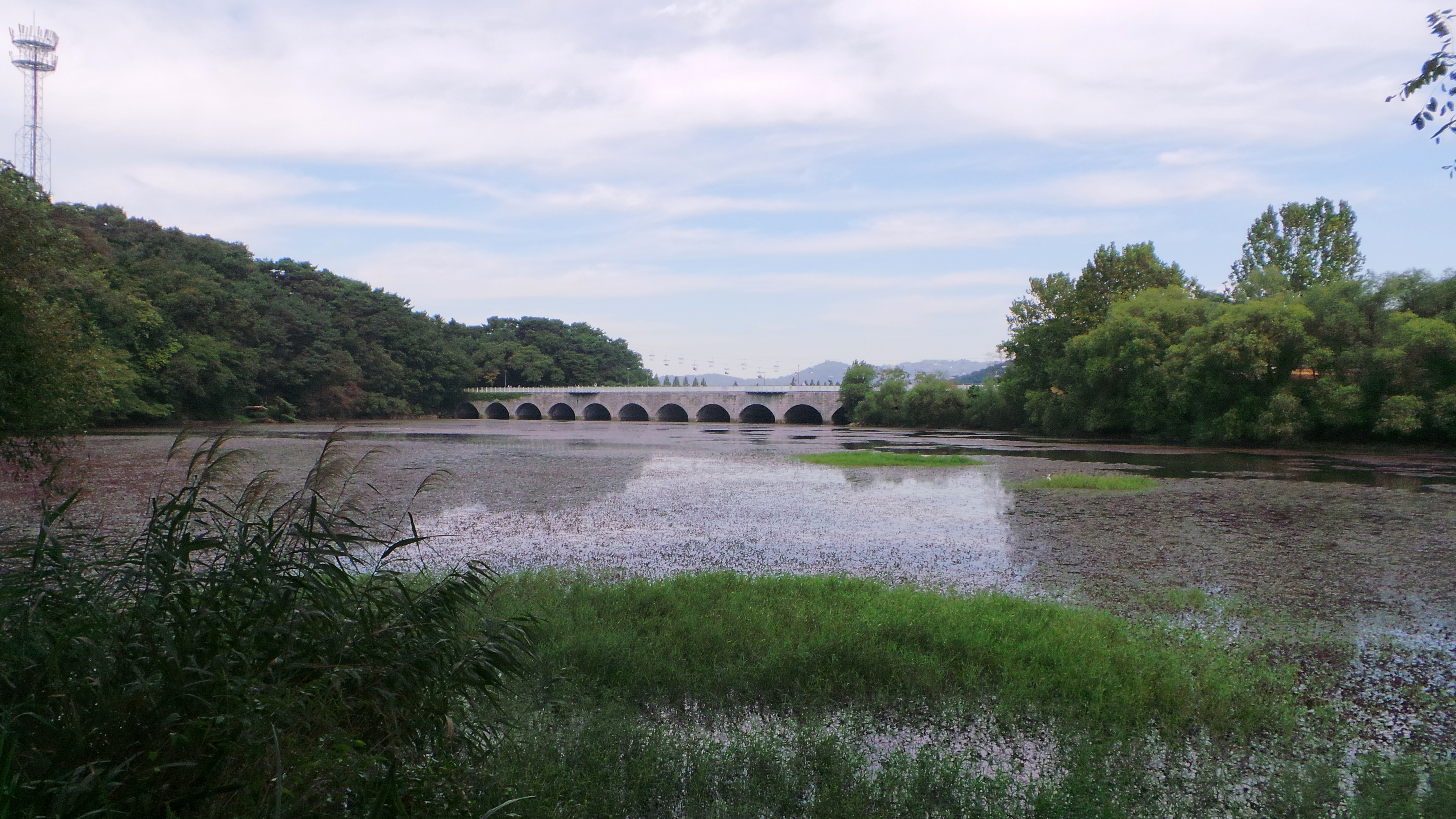 직진은 다리건너 동물원입구방향..우측은 저수지옆으로 가는길..